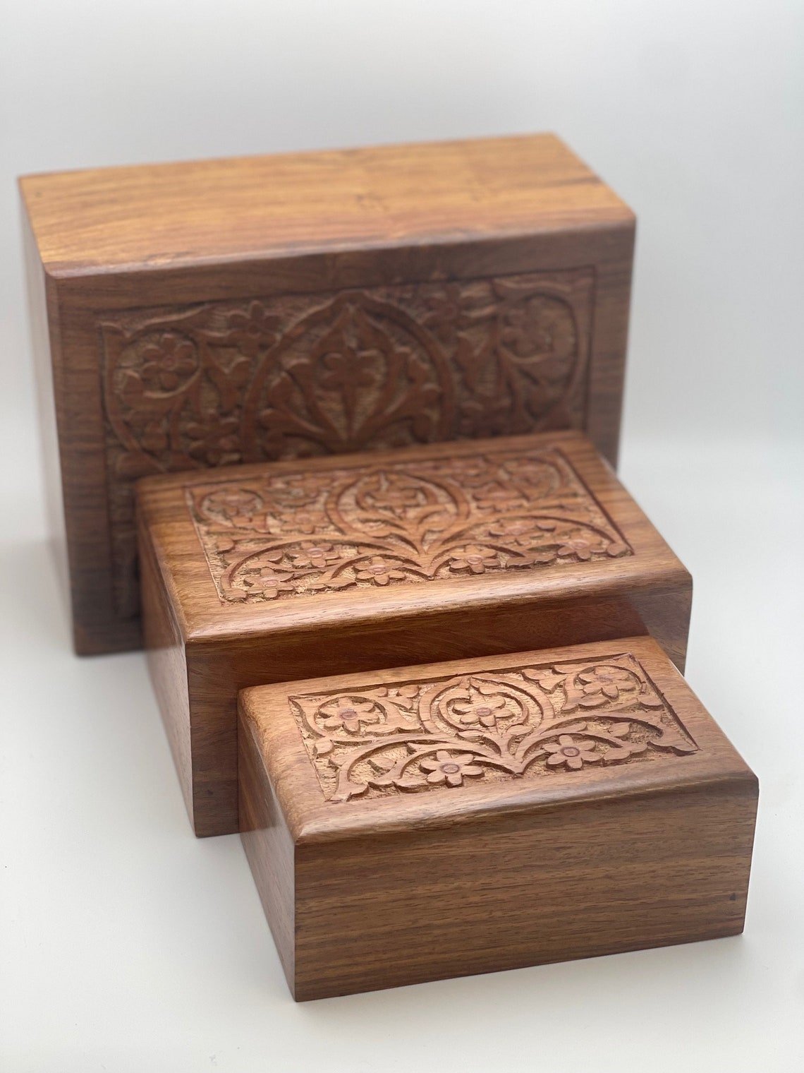 Pet Urn for Ashes, Pet Memory Box, Real Wood Box with Floral Carving, Timeless Tribute in Natural Rosewood $20.00 – $45.00pounds, inches