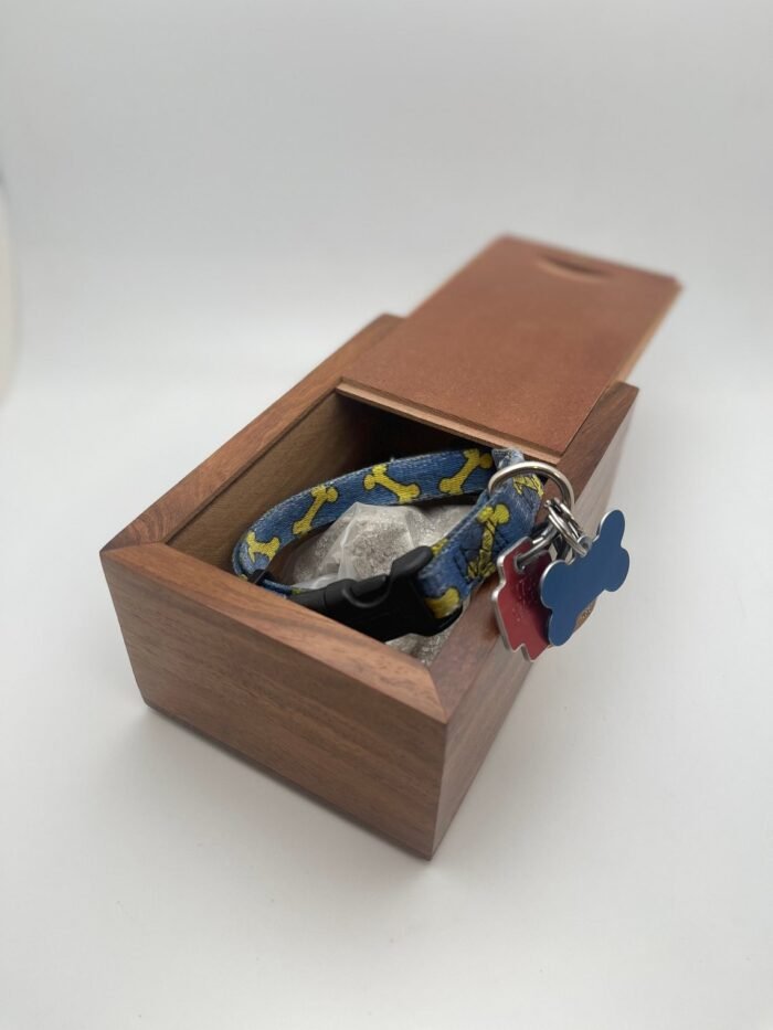 Beautiful pet urn, hand carved rosewood pet keepsake in natural reddish-brown color.